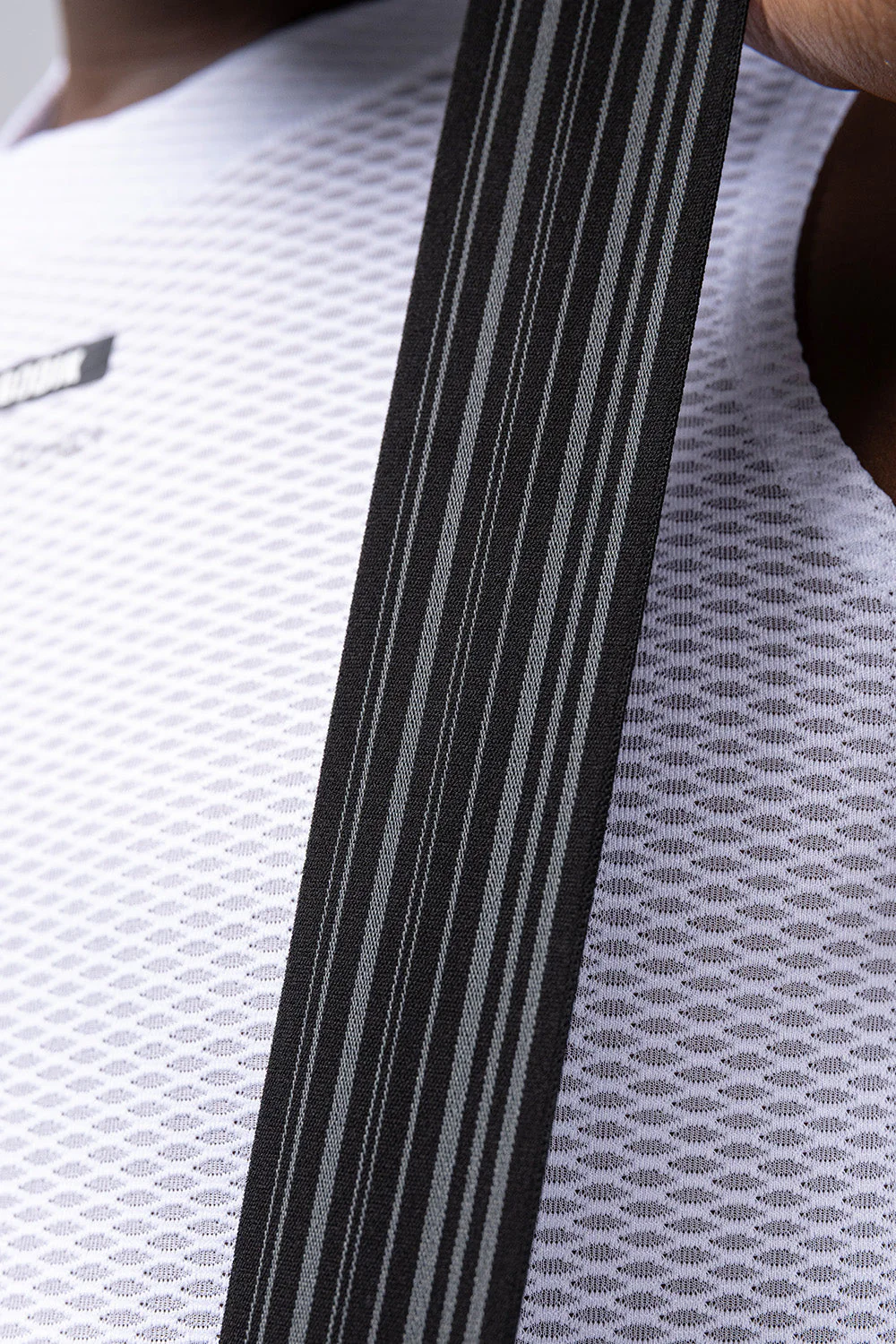 • El tirante presenta una nueva construcción más envolvente, procesado en corte vivo y sin costuras, lo que mejora notablemente el ajuste y reduce los puntos de fricción. En la parte trasera incorpora una apertura central en rejilla que optimiza la evacuación del calor corporal. Las cintas que recorren los hombros están confeccionadas con hilo de grafeno en contraste, un material que favorece la regulación térmica, ofrece propiedades antibacterianas, neutraliza olores y evita la acumulación de humedad, limitando la ganancia de peso por sudoración.