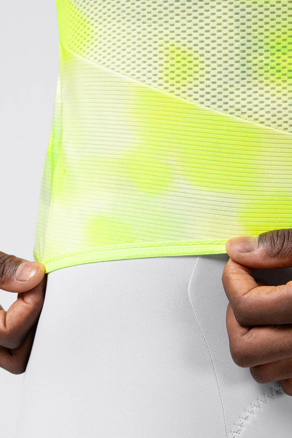 El tejido de rejilla ultraligero proporciona una excelente transpirabilidad, gestionando de forma eficaz el sudor y favoreciendo la regulación térmica incluso en condiciones de calor y humedad extremas. Cada detalle ha sido optimizado: las mangas prescinden ahora de cintas terminales para un acabado más limpio y actual, mientras que el nuevo cuello, más abierto y minimalista, mejora la ventilación en momentos de máxima intensidad.