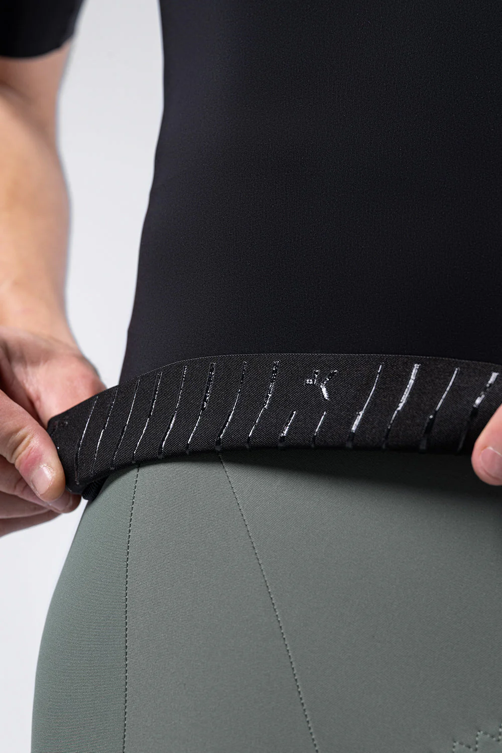 - Conseguimos mayor estabilidad y ajuste en la cintura, con una nueva banda elástica de tamaño ampliado, muy flexible, que recorre todo el perímetro de la cintura para fijar al máximo la prenda. Su interior está micro siliconado, consiguiendo un grip óptimo con una capacidad de transpiración mejorada.
